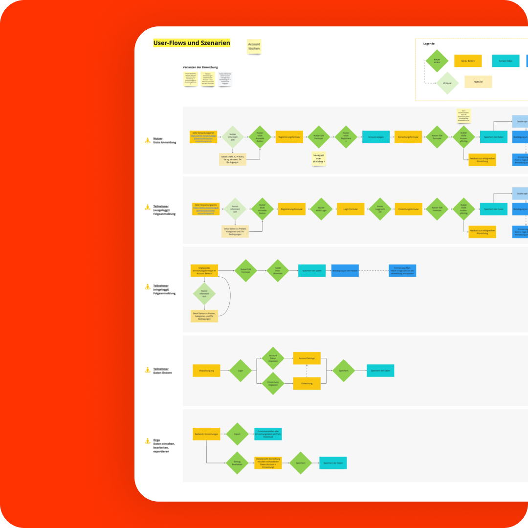 At the beginning of the project, interviews and workshops were conducted to thoroughly analyze the process and break it down into its elements. The new user journey was then defined in close collaboration with the customer. Wireframes were subsequently created to visualize the views for the website users.