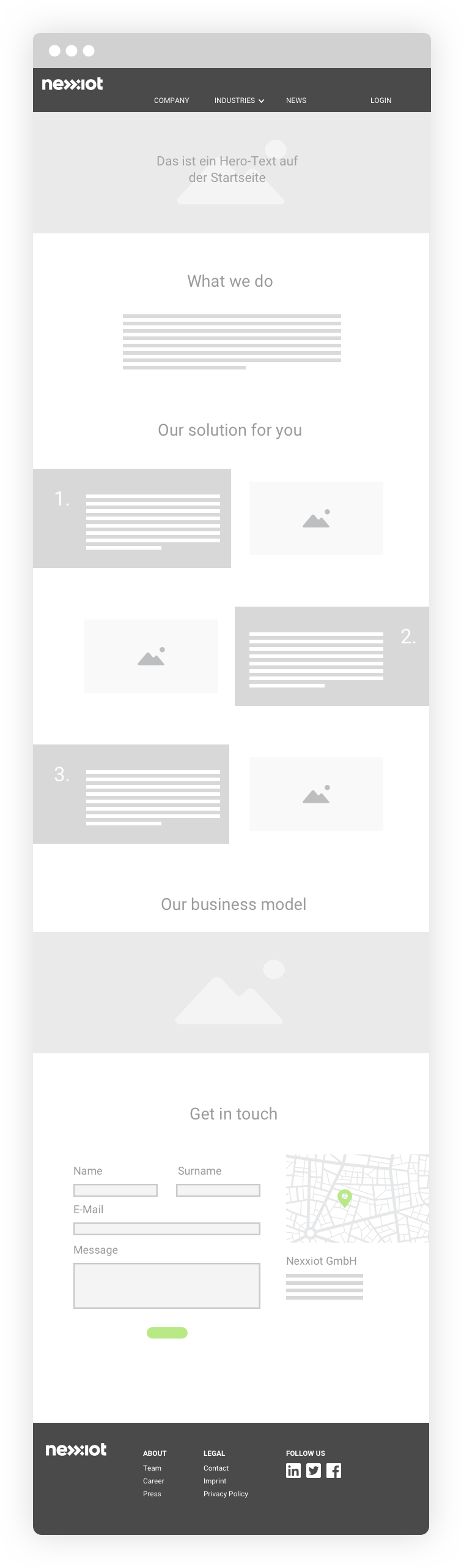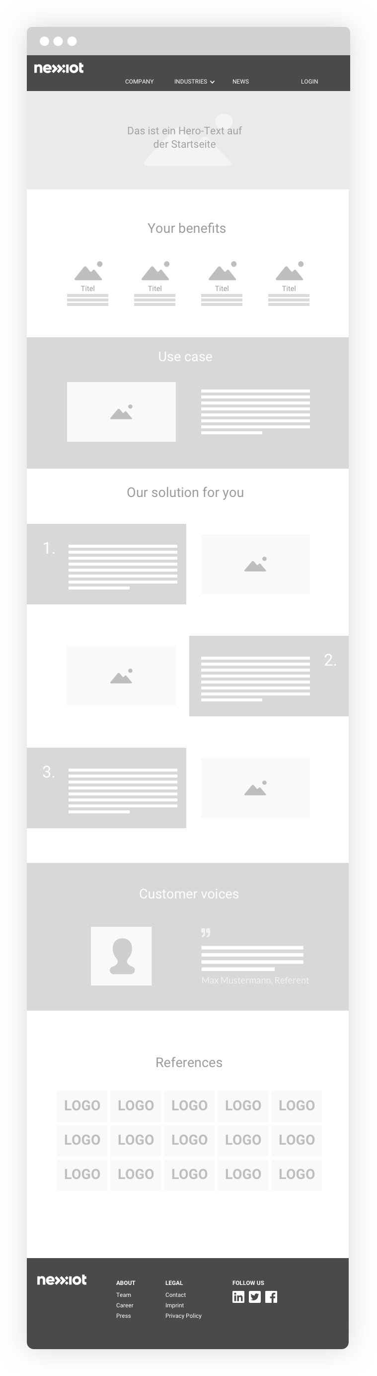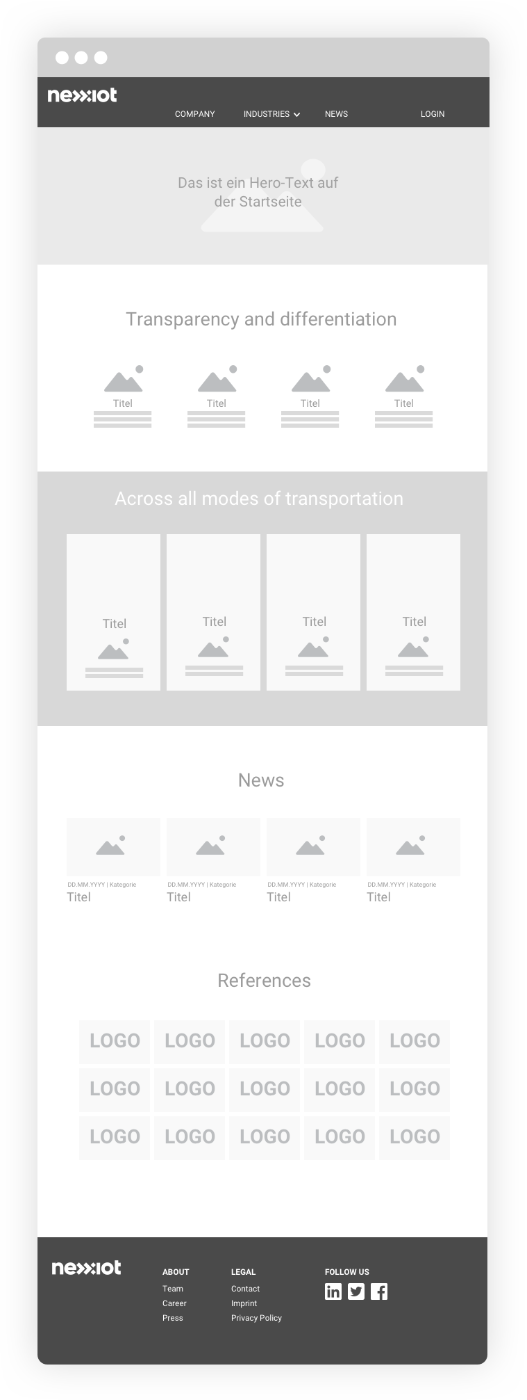 Mithilfe eines neuen und modernen Internetauftritts, basierend auf einem nahezu parallel dazu erfolgenden Rebranding, verfolgte Nexxiot das Ziel einer klaren Neupositionierung und verbesserten Sichtbarkeit im B2B-Markt. Dabei sollten zukünftig vor allem die Zielgruppen aus den Transportsegmenten (Bahn, Tanks, Luft, See) schnell die für sie relevanten Informationen finden. Mithilfe eines Content-Management-Systems sollte darüber hinaus die Pflege der Website erleichtert und eine gute Performance gewährleistet werden – künftig auch in mehreren Sprachen.
