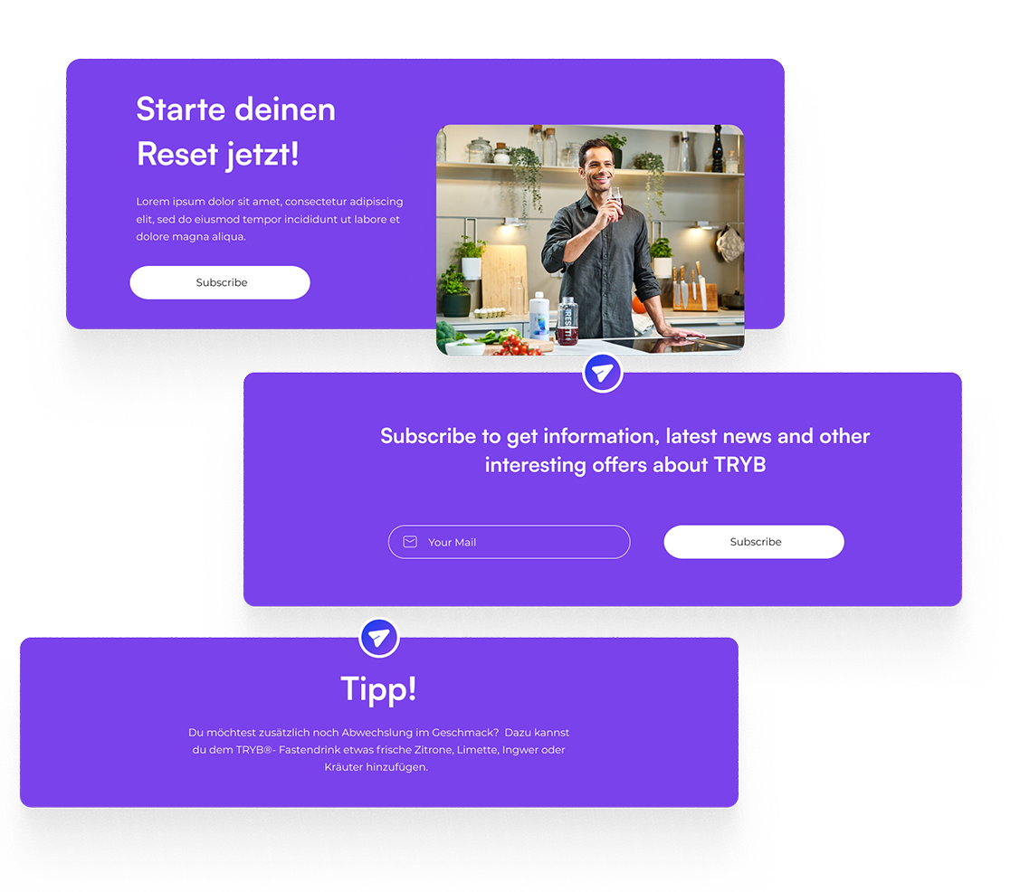 Die bisherigen Content-Seiten des Shops von TRYB waren in Shopware verortet. Ziel war es, diese Seiten einfacher pflegbar zu machen und den Redakteuren mehr Freiheiten und Komfort zu geben. Darüber hinaus sollte das leicht geänderte Branding integriert werden. Ebenso sollten die Besucher mehr Inhalte rund um das Produkt finden und besser durch das Angebot geführt werden. Das System sollte zudem aber auch perspektivisch eine Internationalisierung sowie umfassendere Services für Kunden bieten können.
