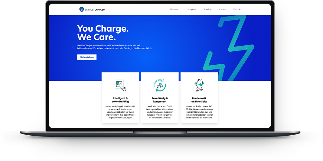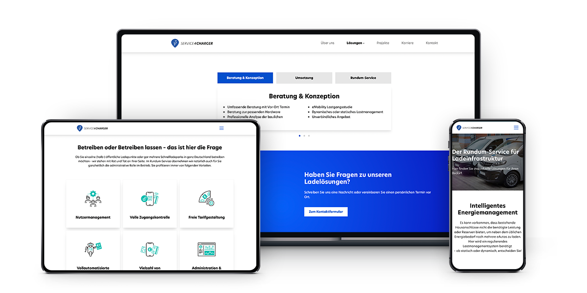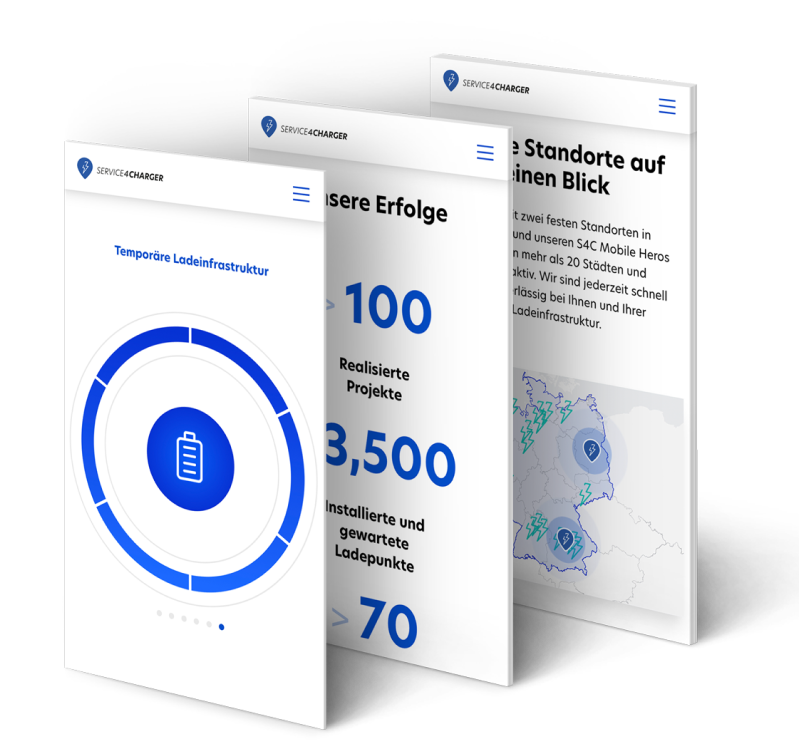 Ziel des Projekts war ein kompletter Relaunch der Corporate Website von Service4Charger. Mit einem nutzerzentrierten Ansatz sollten sowohl die Struktur als auch das Visual Design überarbeitet werden. Anforderungen waren unter anderem ein modernes Look & Feel, eine fokussierte Nutzeransprache und ein nutzerfreundliches und leichtgewichtiges Corporate-Management-System (CMS), um die Website auf einen modernen technischen Stand zu bringen.