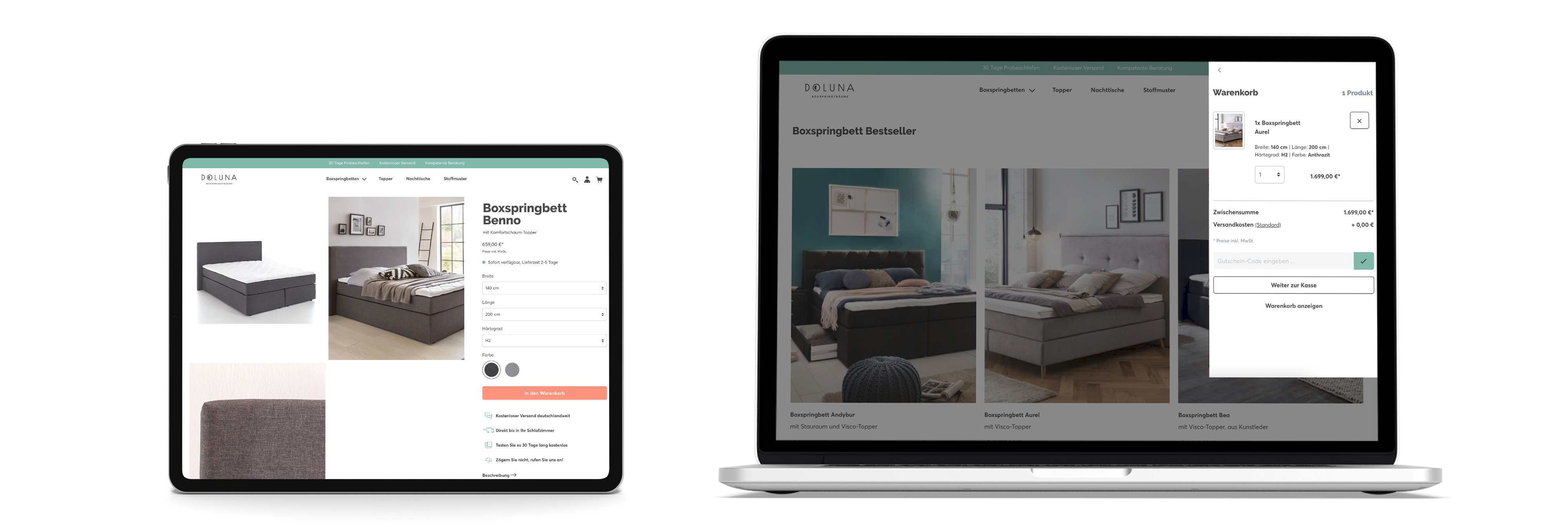 Das Projekt hatte zum Ziel, den Onlineshop für die neue Marke Doluna zu launchen. Dabei sollten mithilfe der in einem vorhergehenden Projekt erstellten Shopware-Plattform Synergien geschaffen werden. Der Shop wurde sowohl an das Produktinformations- als auch an das Warenwirtschaftssystem angebunden.